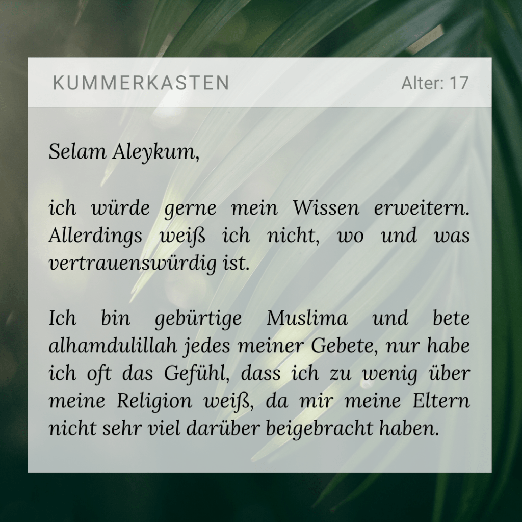 Wichtig ist, dran zu bleiben, denn am Anfang brauchst du viel Geduld, aber danach wirst du die Süße des Wissens genießen. Alhamdulillāh, im Islām ist der Wissenserwerb eine ‘Ibādah, die dich Allāh, subhanahu wa ta’alā, näher bringt.