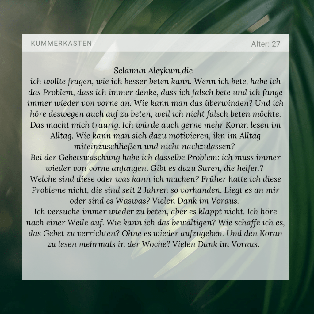 Du kannst inshAllah dein Gebet verbessern und zu denjenigen gehören, die das Gebet lieben und genießen.